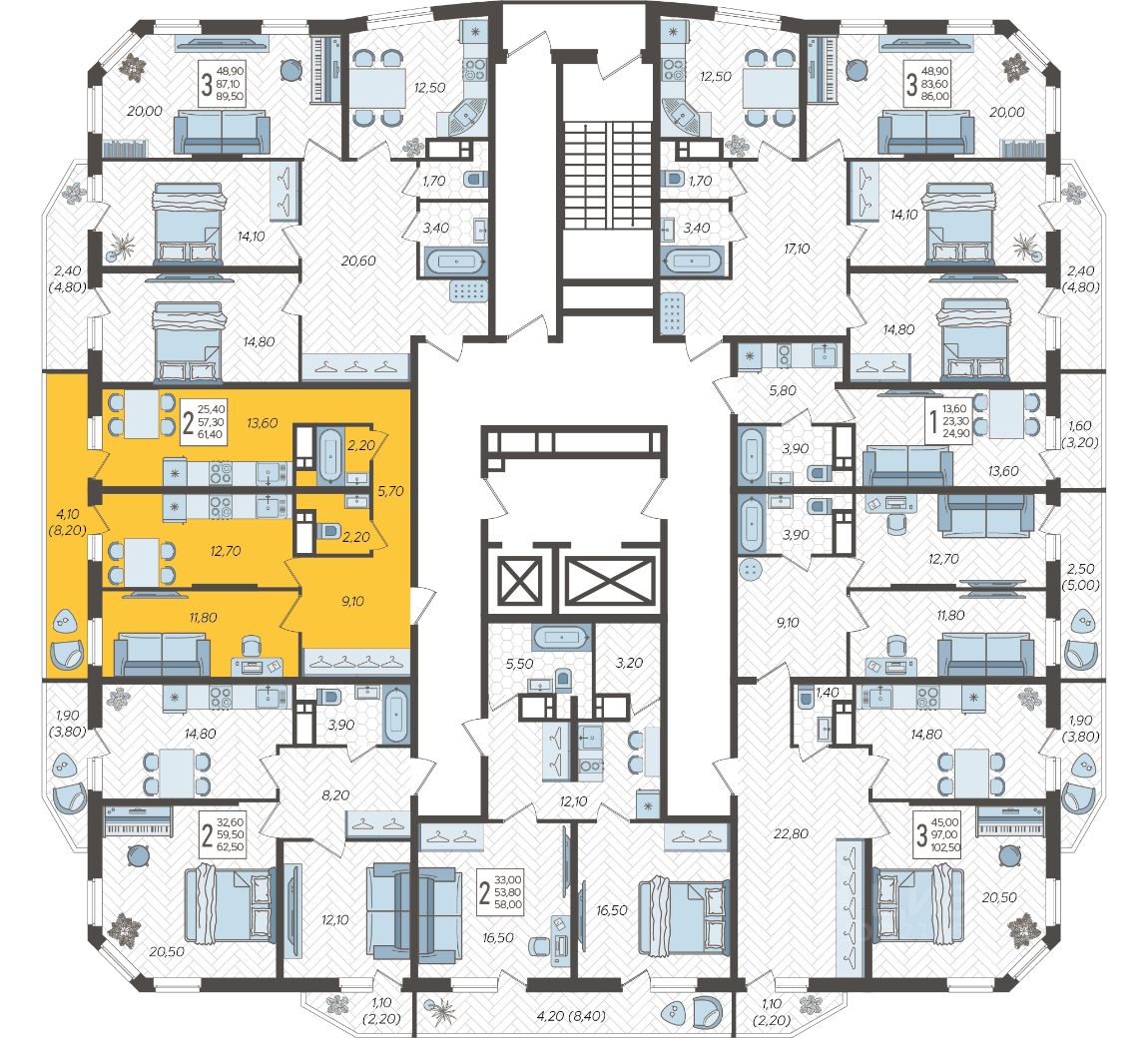 Продаётся 2-комнатная квартира в строящемся доме (Литер 6), срок сдачи: 1 кв. 2023, общей площадью 61.4 кв.м., на 9 этаже. Предчистовая отделка, но с возможностью заказать отделку.