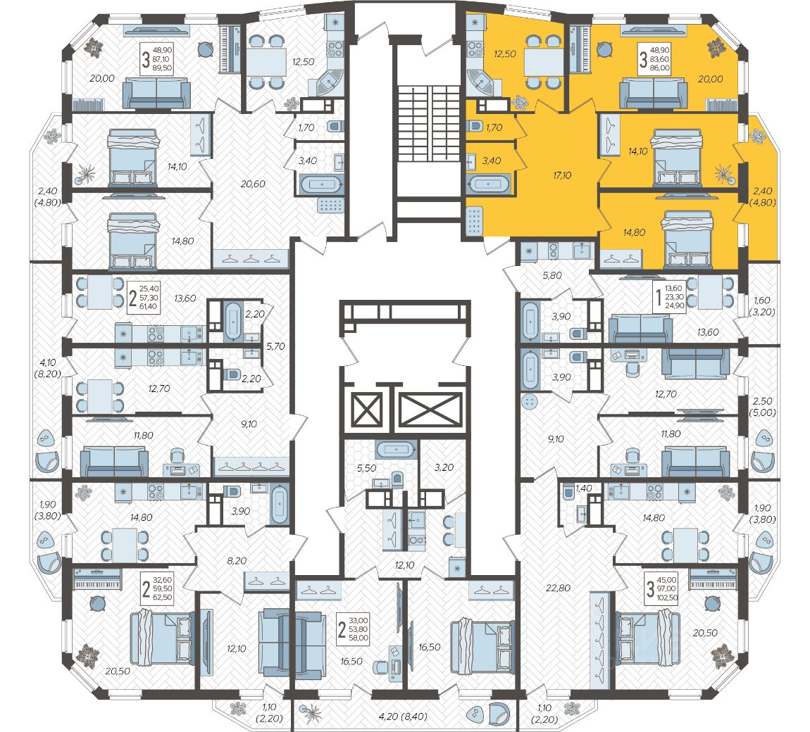 Продаётся 3-комнатная квартира в строящемся доме (Литер 6), срок сдачи: 1 кв. 2023, общей площадью 86 кв.м., на 11 этаже. Предчистовая отделка, но с возможностью заказать отделку.