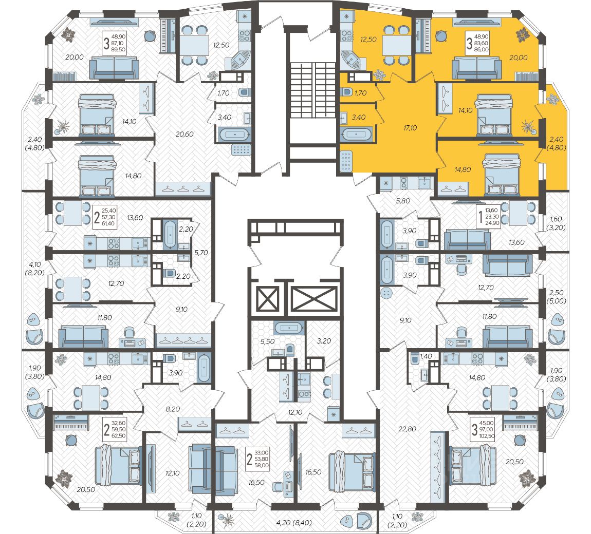 Продаётся 3-комнатная квартира в строящемся доме (Литер 6), срок сдачи: 1 кв. 2023, общей площадью 86 кв.м., на 13 этаже. Предчистовая отделка, но с возможностью заказать отделку.