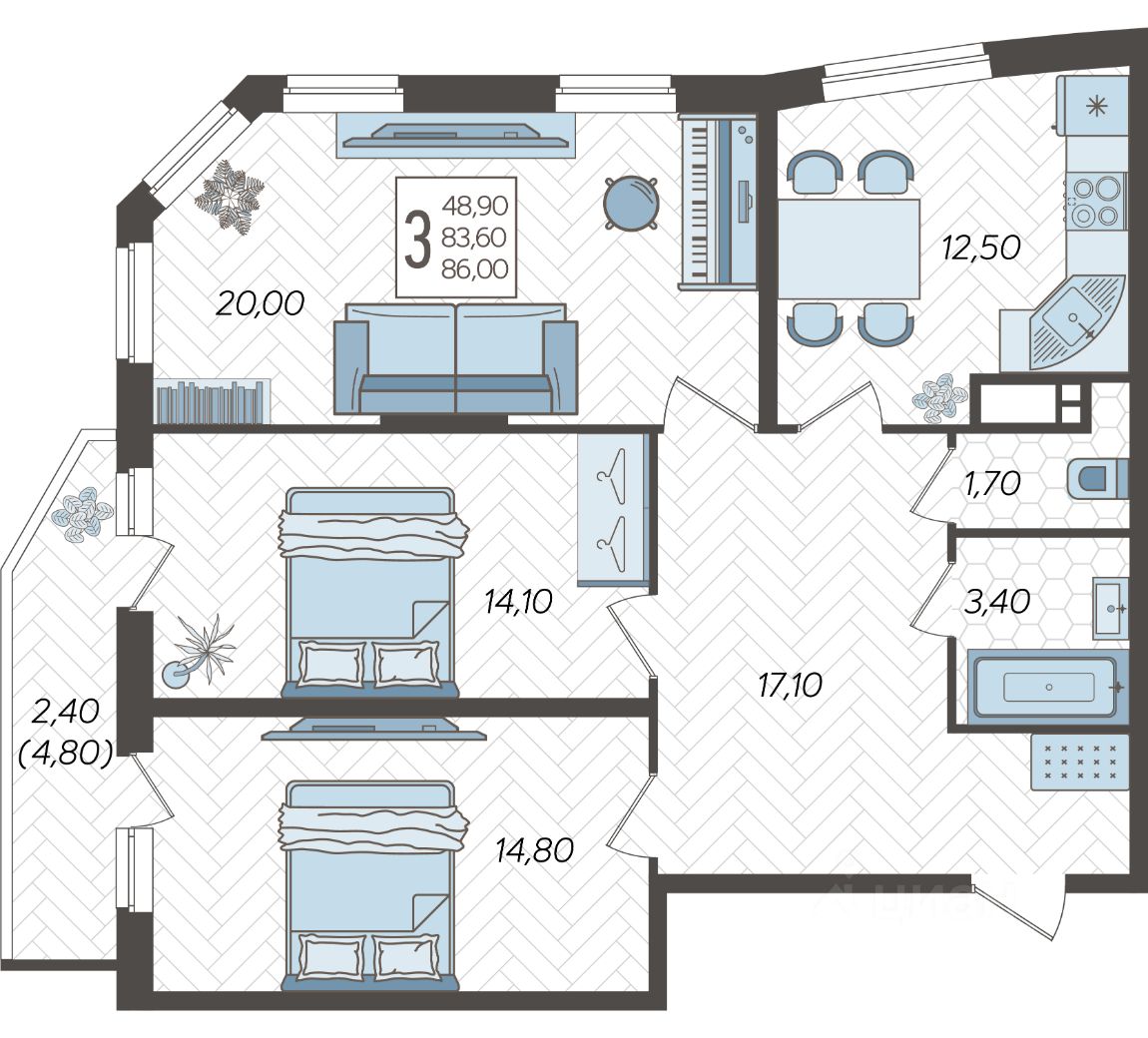 Продаётся 3-комнатная квартира в строящемся доме (Литер 6), срок сдачи: 1 кв. 2023, общей площадью 86 кв.м., на 16 этаже. Предчистовая отделка, но с возможностью заказать отделку.