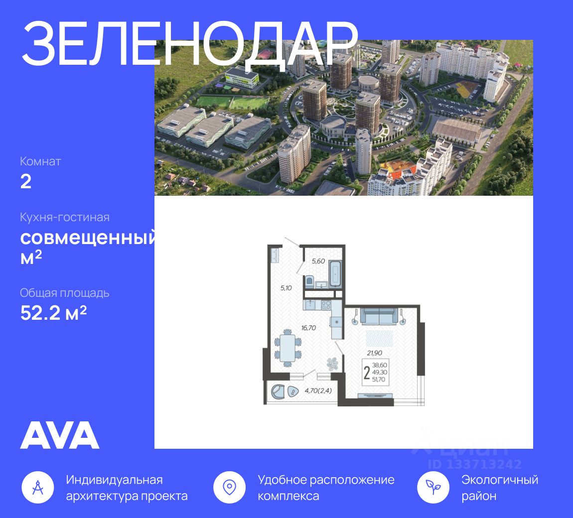 Продаётся 2-комнатная квартира в строящемся доме (Литер 5б), срок сдачи: 1 кв. 2023, общей площадью 52.2 кв.м., на 15 этаже. Предчистовая отделка, но с возможностью заказать отделку.