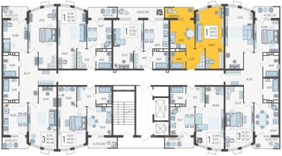 От 4-х до 7 квартир на этаже. Одно из важных преимуществ при выборе квартиры не много соседей рядом.Лифт, который спускается в подземный паркинг и больше количество парковочных мест сделает жизнь в ЖК Режиссёр еще комфортнее!
