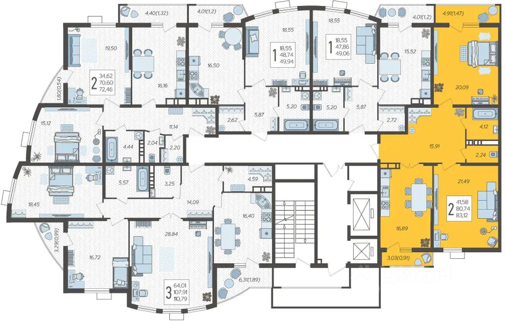 От 4-х до 7 квартир на этаже. Одно из важных преимуществ при выборе квартиры не много соседей рядом.Лифт, который спускается в подземный паркинг и больше количество парковочных мест сделает жизнь в ЖК Режиссёр еще комфортнее!