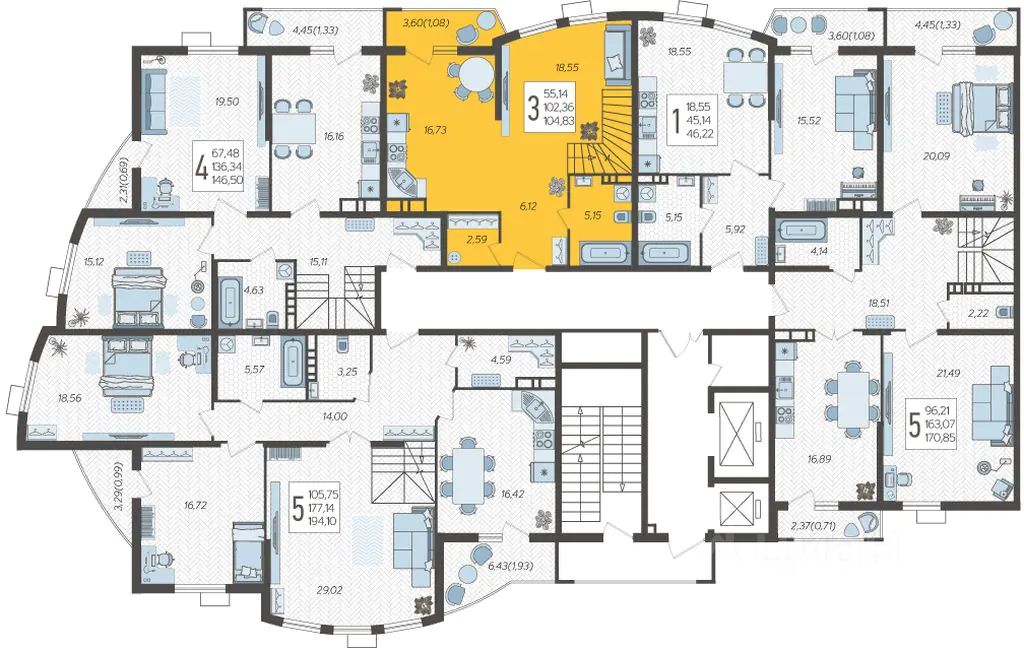 От 4-х до 7 квартир на этаже. Одно из важных преимуществ при выборе квартиры не много соседей рядом.Лифт, который спускается в подземный паркинг и больше количество парковочных мест сделает жизнь в ЖК Режиссёр еще комфортнее!