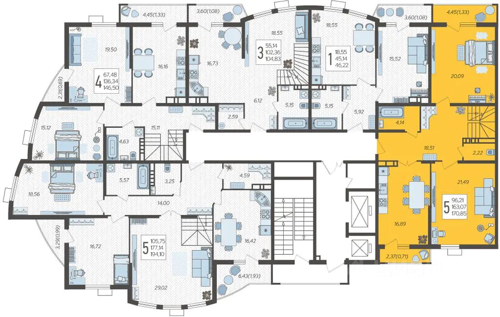 Продается 5-комнатная квартира в ЖК "Режиссёр" в доме (Литер 4), общей площадью 170.85 кв.м., на 20 этаже. Без отделки, но с возможностью заказать ремонт.