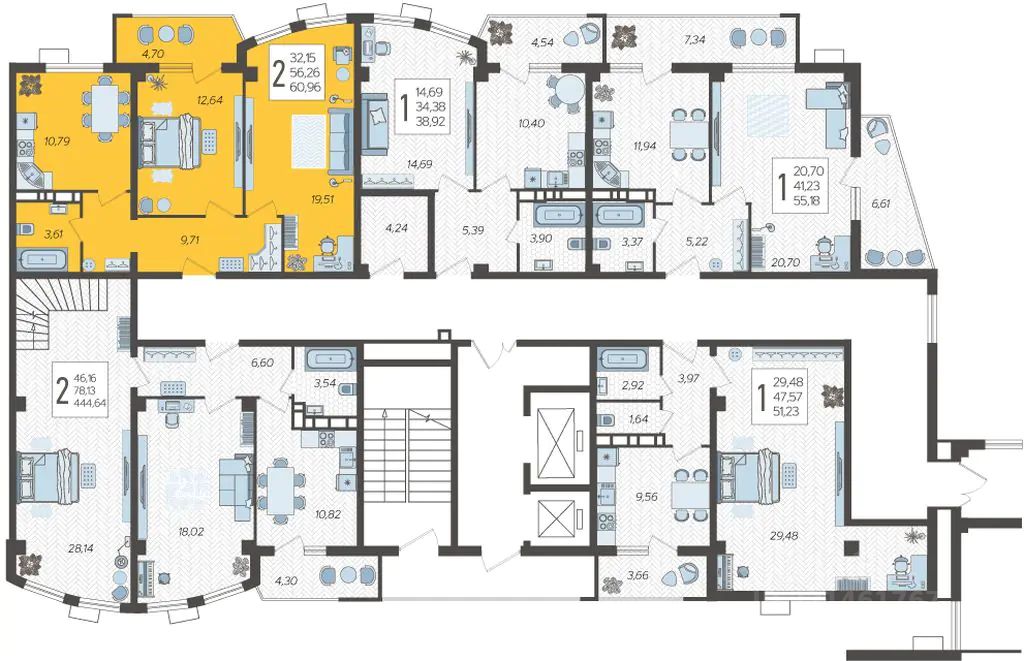 Продаются 2-комнатные апартаменты в ЖК "Режиссёр" в доме (Литер 4), общей площадью 60.96 кв.м., на 13 этаже. Без отделки, но с возможностью заказать ремонт.