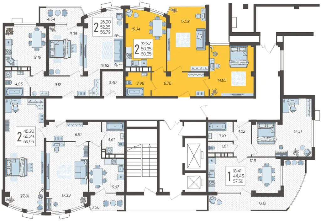 Продаются 2-комнатные апартаменты в ЖК "Режиссёр" в доме (Литер 4), общей площадью 60.35 кв.м., на 12 этаже. Без отделки, но с возможностью заказать ремонт.