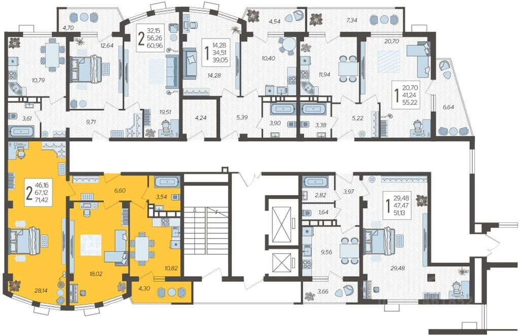 Продаются 2-комнатные апартаменты в ЖК "Режиссёр" в доме (Литер 4), общей площадью 71.42 кв.м., на 4 этаже. Без отделки, но с возможностью заказать ремонт.