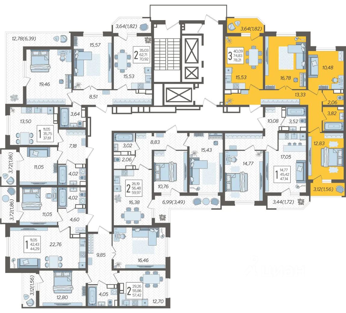 Продаётся 3-комнатная квартира в строящемся доме (Дом Литер 1), срок сдачи: 1 кв. 2025, общей площадью 78.21 кв.м., на 17 этаже. Без отделки, но с возможностью заказать отделку