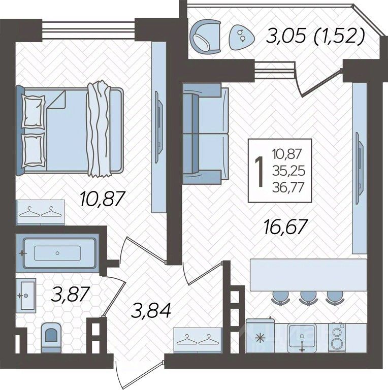 Продаётся 1-комнатная квартира в строящемся доме (Дом Литер 1), срок сдачи: 1 кв. 2025, общей площадью 36.77 кв.м., на 22 этаже. Без отделки, но с возможностью заказать отделку