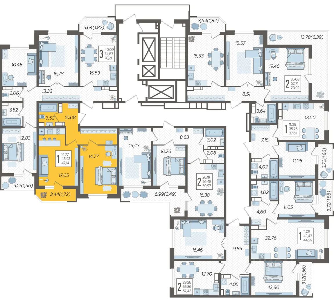 Продаётся 1-комнатная квартира в строящемся доме (Дом Литер 1), срок сдачи: 1 кв. 2025, общей площадью 47.14 кв.м., на 17 этаже. Без отделки, но с возможностью заказать отделку