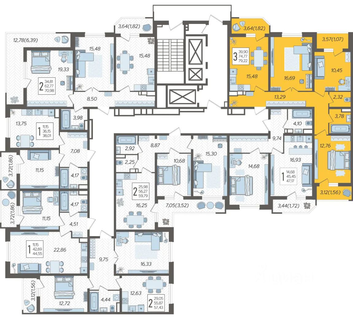 Продаётся 3-комнатная квартира в строящемся доме (Дом Литер 1), срок сдачи: 1 кв. 2025, общей площадью 79.22 кв.м., на 3 этаже. Без отделки, но с возможностью заказать отделку