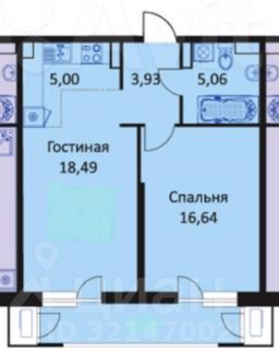 В квартире большая кухня-гостиная 23 кв м, спальня 16,5 кв м, просторный санузел 5 кв м.