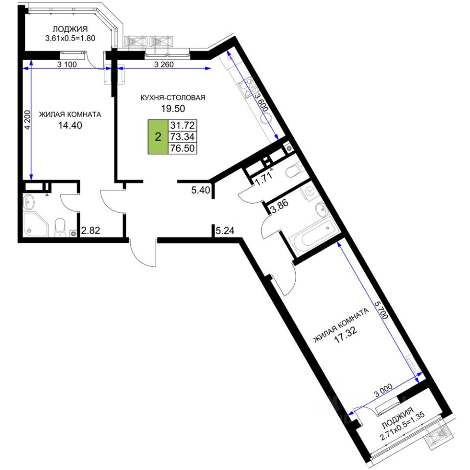 Общая площадь76,5 м²