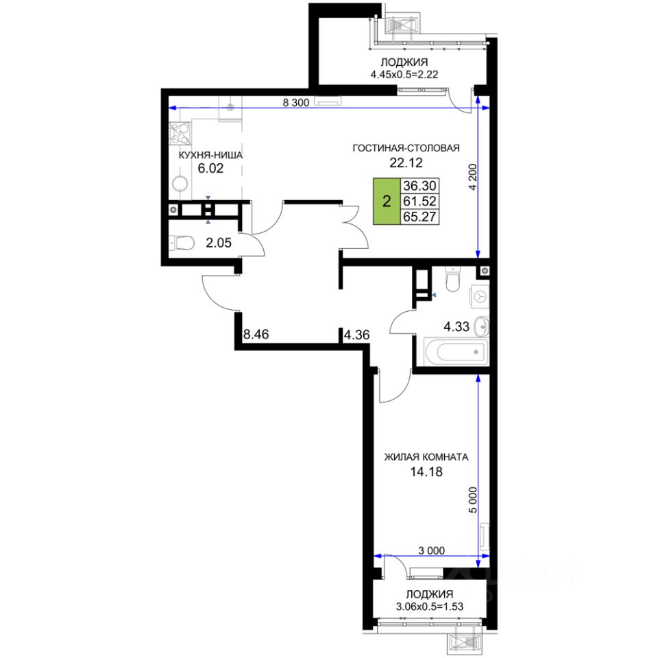 Общая площадь65,27 м²