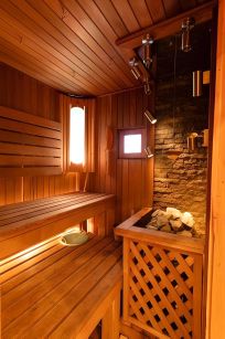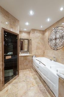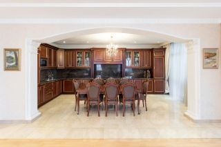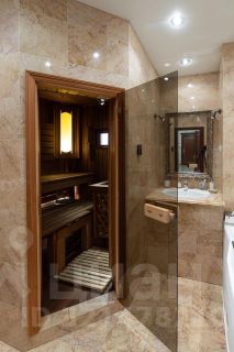 Сделан дизайнерский ремонт с элитной мебелью с использованием премиальных материалов. В квартире 2 санузла, в одном из которых встроена сауна с отделкой из канадского кедра (разрешительная документация имеется). Сантехника Villeroy&Boch, гидромассажная ванна фирмы Jacuzzi, плитка и керамогранит Versace. В санузле и на кухне встроены бойлеры. Установлена система очистки воды. На одной из утепленных лоджий оформлен зимний сад с плиткой из итальянского травертина. Высокие потолки (3 метра). Квартира тихая, теплая (батареи выведены на все три лоджии). Много встроенных шкафов и мест для хранения.