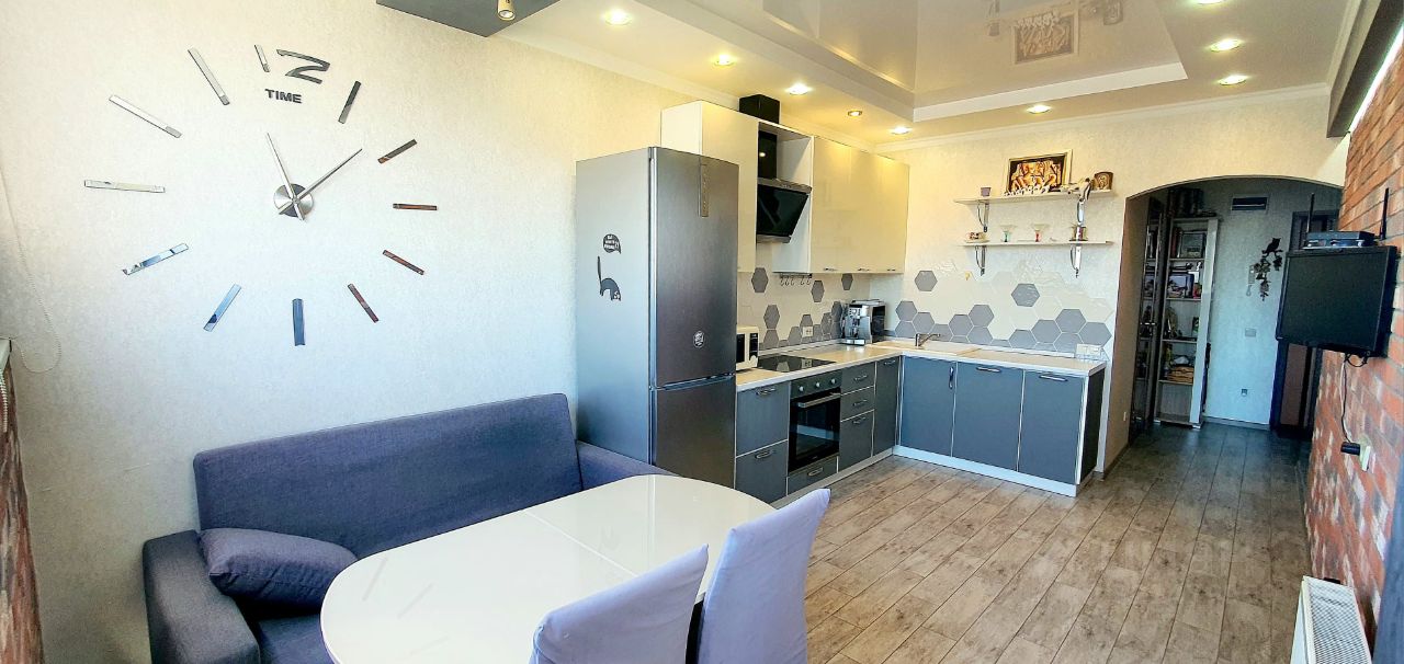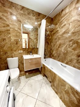 В квартире сделан качественный евроремонт: стильные и современные материалы, продуманная планировка и идеальное состояние. Просторная кухня оснащена всем необходимым для комфортного приготовления пищи. Совмещенный санузел выполнен в светлых тонах и оборудован современной сантехникой.