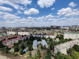 Это лучшая планировка трехкомнатной квартиры в этом доме. Вид с 20 этажа лучший в городе вы видите буквально весь Краснодар, так как географически дом располагается практически в центре Краснодара. С окон видно и новый стадион Краснодар, и многоэтажки Кубанской Набережной, реку Кубань на юге города.