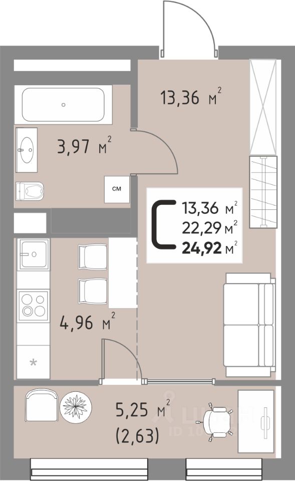 Продается 1-комнатная квартира площадью 24,92 кв. м на 9 этаже в новом современном клубном квартале от строительной компании "КОНТИНЕНТ ГРУПП".