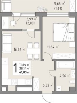 Продается 1-комнатная квартира площадью 41,83 кв. м на 3 этаже в новом современном клубном квартале от строительной компании "КОНТИНЕНТ ГРУПП".