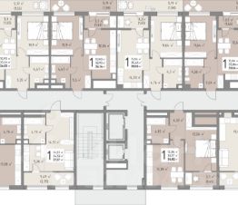 Во всех домах на 3-м этаже располагаются квартиры с открытыми террасами площадью от 14 до 16 м2.