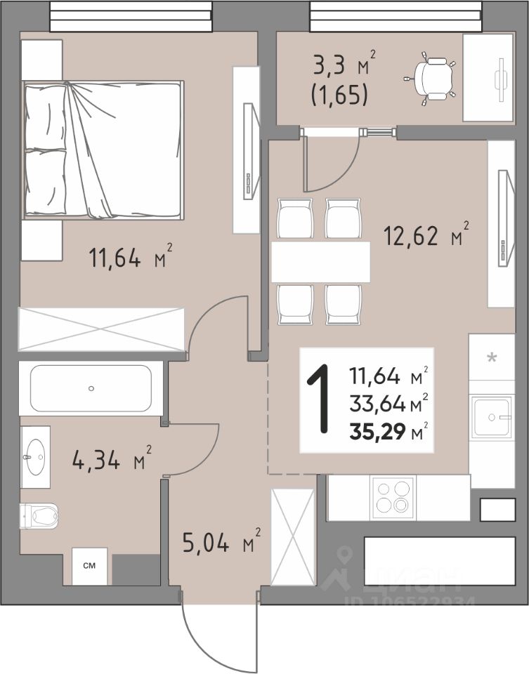 Продается 1-комнатная квартира площадью 35,29 кв. м на 6 этаже в новом современном клубном квартале от строительной компании "КОНТИНЕНТ ГРУПП".