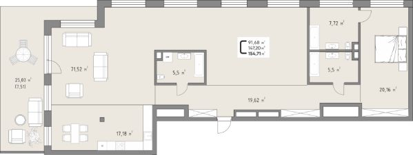 Продается 1-комнатная квартира площадью 154,71 кв. м на 15 этаже в новом современном клубном квартале от строительной компании "КОНТИНЕНТ ГРУПП".