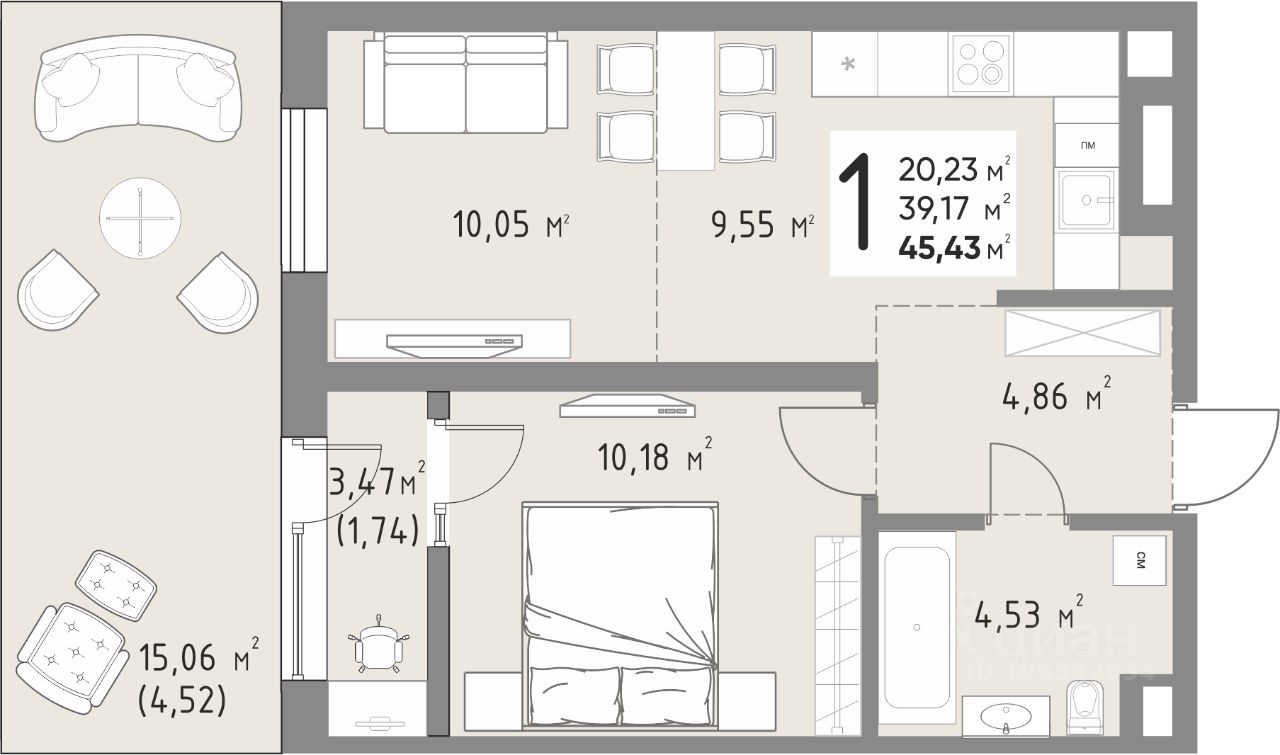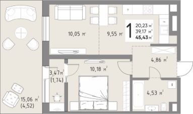 Продается 1-комнатная квартира площадью 45,43 кв. м на 3 этаже в новом современном клубном квартале от строительной компании "КОНТИНЕНТ ГРУПП".