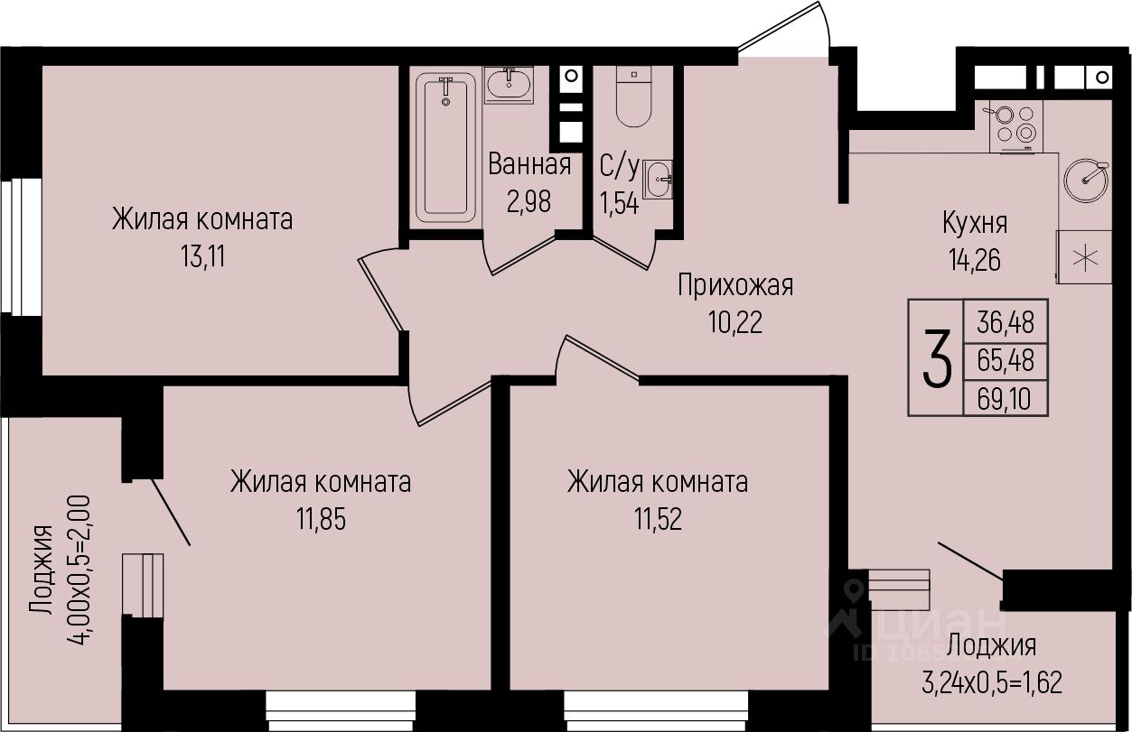 Продается 3-комнатная квартира площадью 69,10 кв.м. на 3 этаже в новом современном клубном квартале от строительной компании "КОНТИНЕНТ ГРУПП".