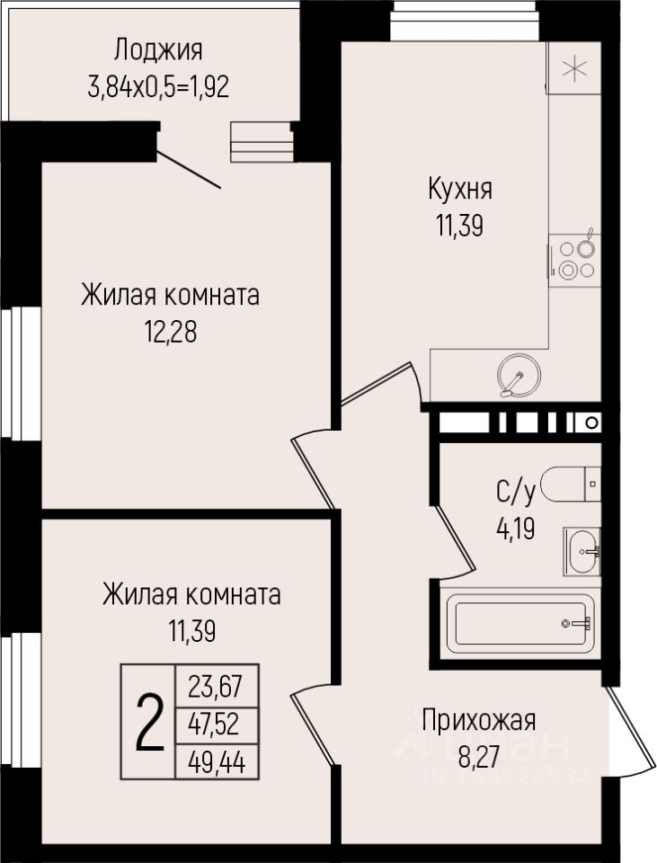 Продается 2-комнатная квартира площадью 49,44 кв.м. на 4 этаже в новом современном клубном квартале от строительной компании "КОНТИНЕНТ ГРУПП".