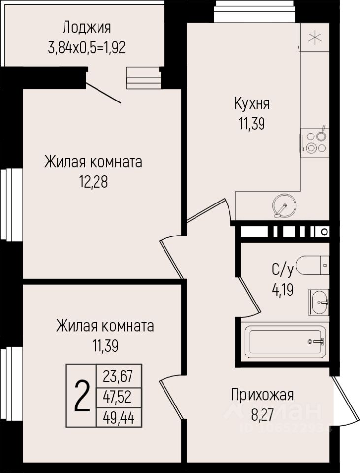 Продается 2-комнатная квартира площадью 49,44 кв.м. на 6 этаже в новом современном клубном квартале от строительной компании "КОНТИНЕНТ ГРУПП".