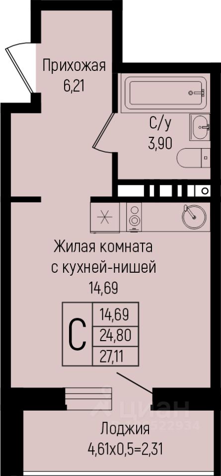 Продается студия площадью 27,11 кв.м. на 13 этаже в новом современном клубном квартале от строительной компании "КОНТИНЕНТ ГРУПП".