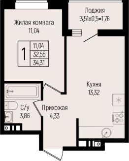Продается 1-комнатная квартира площадью 34,31 кв.м. на 9 этаже в новом современном клубном квартале от строительной компании "КОНТИНЕНТ ГРУПП".