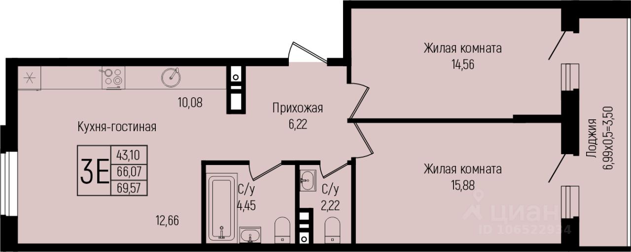 Продается Евро 3-комнатная квартира площадью 69,57 кв.м. на 9 этаже в новом современном клубном квартале от строительной компании "КОНТИНЕНТ ГРУПП".
