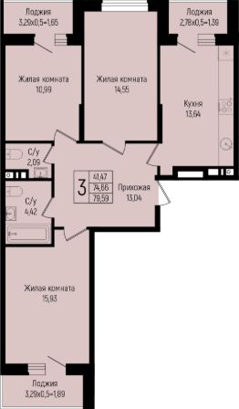 Продается 3-комнатная квартира площадью 79,59 кв.м. на 2 этаже в новом современном клубном квартале от строительной компании "КОНТИНЕНТ ГРУПП".