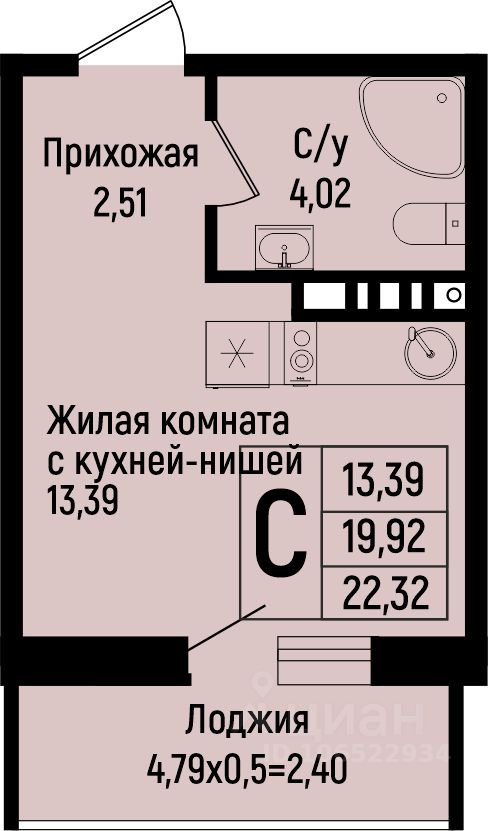 Продается студия площадью 22,32 кв.м. на 6 этаже в новом современном клубном квартале от строительной компании "КОНТИНЕНТ ГРУПП".