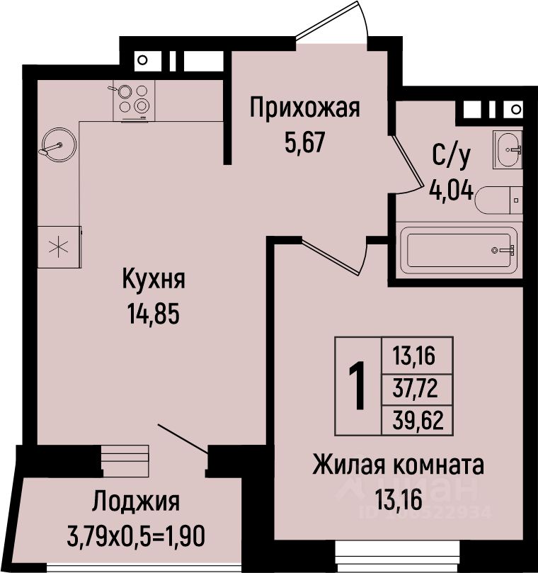 Продается 1-комнатная квартира площадью 39,62 кв.м. на 12 этаже в новом современном клубном квартале от строительной компании "КОНТИНЕНТ ГРУПП".