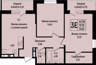 Продается Евро 3-комнатная квартира площадью 73,95 кв.м. на 2 этаже в новом современном клубном квартале от строительной компании "КОНТИНЕНТ ГРУПП".