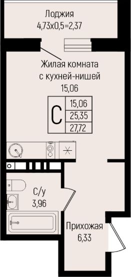 Продается студия площадью 27,72 кв.м. на 7 этаже в новом современном клубном квартале от строительной компании "КОНТИНЕНТ ГРУПП".