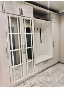 Прихожая - 12,1кв.м: Огромный шкаф(два вертикальных шкаф-пенала, отдел для верхней одежды, обувной отдел с сиденьем, в верхней части - антресоли), выполненный на заказ, с качественной фурнитурой Blum.