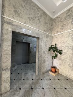 Удобная планировка с вместительной гардеробной, кухня 13 м2, просторная комната 18 м2, санузел 4 м2. Высокие потолки. Французский витраж, панорамный вид на город.