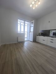 Квартира студия с ремонтом новым, классные видовые характеристики, огромная лоджия где можно сделать рабочий кабинет, есть новенькая кухня, сплит-система, во дворе дет, сад, есть парковка в поздемном паркинге на 0 этаже, школа рядом, скоро будет проходит трамвай рядом, есть много другого общественного транспорта, салоны, магазины, кафе, современный красивый комплекс, звоните, задавайте вопросы, приезжайте на просмотр., комиссии нет!