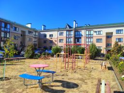 Во дворе есть детская площадка, парковка, видеонаблюдение.