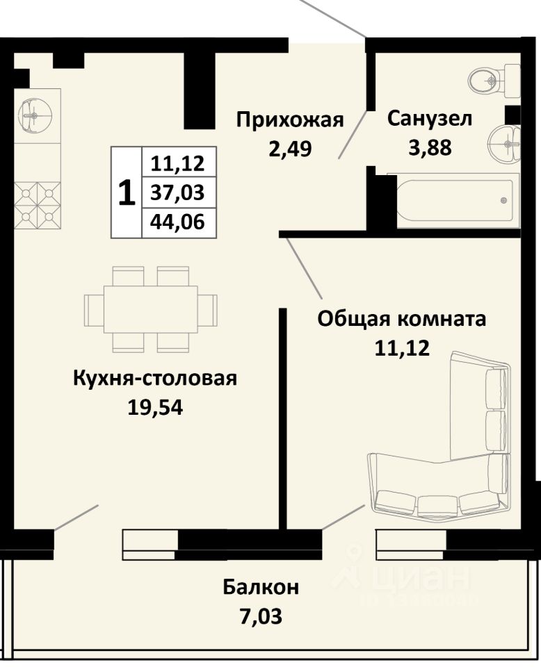 1-комнатная квартира в новом жилом комплексе комфорт-класса "Южные соседи" в тихом зелёном районе Краснодара, мкр. Молодёжный (ул. Северная, 42).