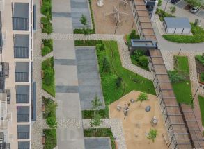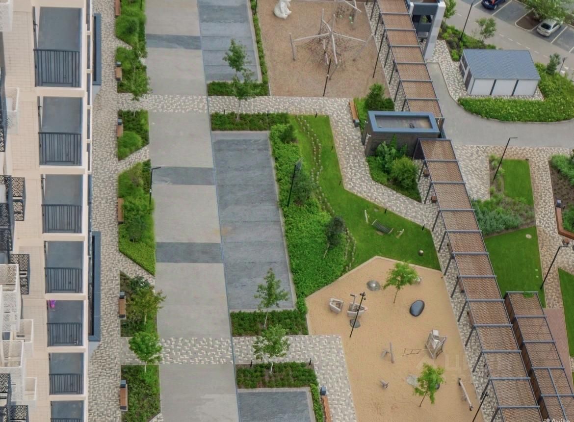 на территории ЖК имеется детский сад и школа, а так де отдельные зоны для коворкинга, игры в теннис, футбольное поле, а так же площадки для выгула собак. Закрытая территория по системе умный двор (работает через приложение)