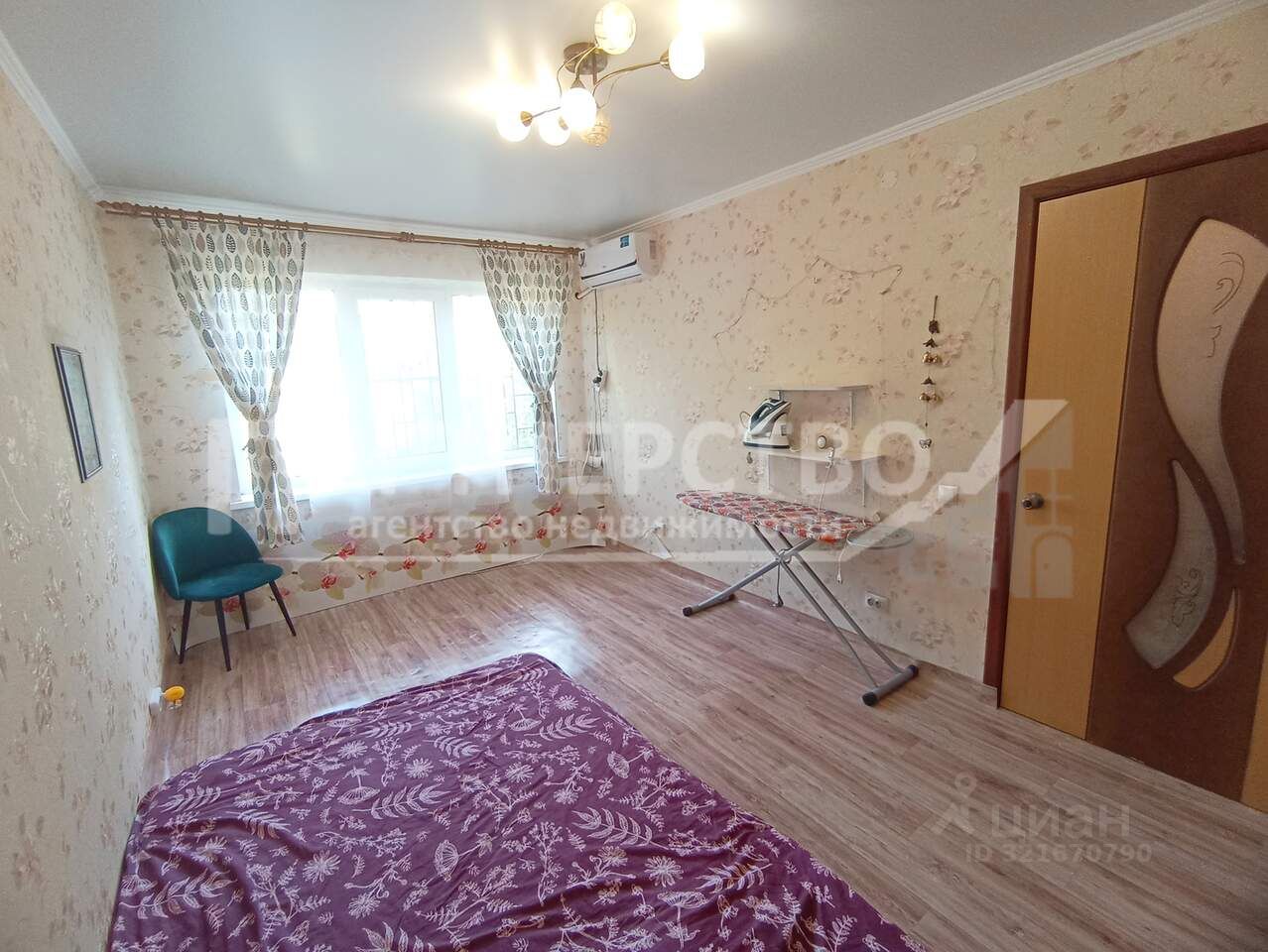 Квартира находится на 1-ом этаже в 2-х этажном доме. В квартире: комната , кухня , ванная комната. Сделан качественный ремонт: окна пластик , натяжные потолки, полностью поменяна электропроводка. Встроенный шкаф, сплит.