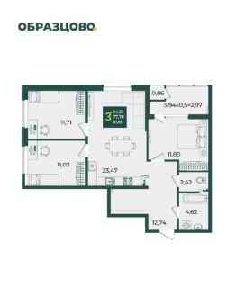 Продаётся 3-комнатная квартира в строящемся доме (Литер 4), срок сдачи: III-кв. 2026, общей площадью 81.61 кв.м., на 3 этаже. Новый жилой комплекс "Микрорайон Образцово" от застройщика "ГК ИНСИТИ" расположен по адресу: Россия, Краснодар, улица 1 Мая