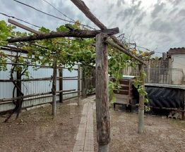Участок огорожен со всех сторон забором, размер около 10 соток, на территории есть хоз.постройки для разведения птиц и других животных, а так же кладовые помещения. На территории есть плодово-ягодные деревья, виноградник. Отдельный заезд для автомобиля с воротами.