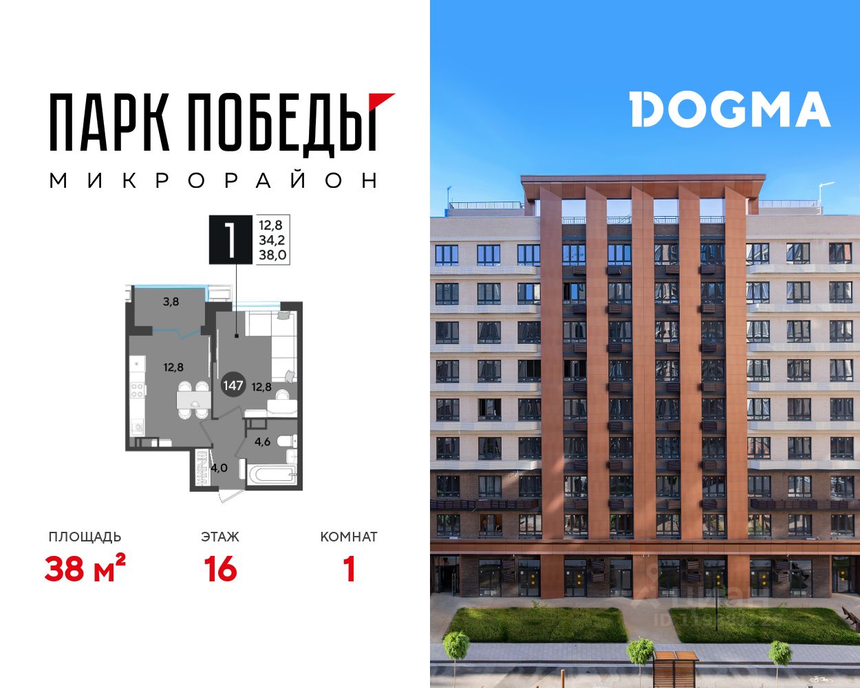 Срок сдачи: 2 кв. 2026, общей площадью 38 кв.м., на 16 этаже.