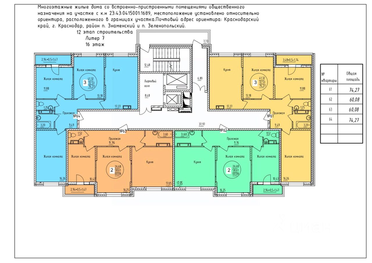 Общая площадь74,27 м²